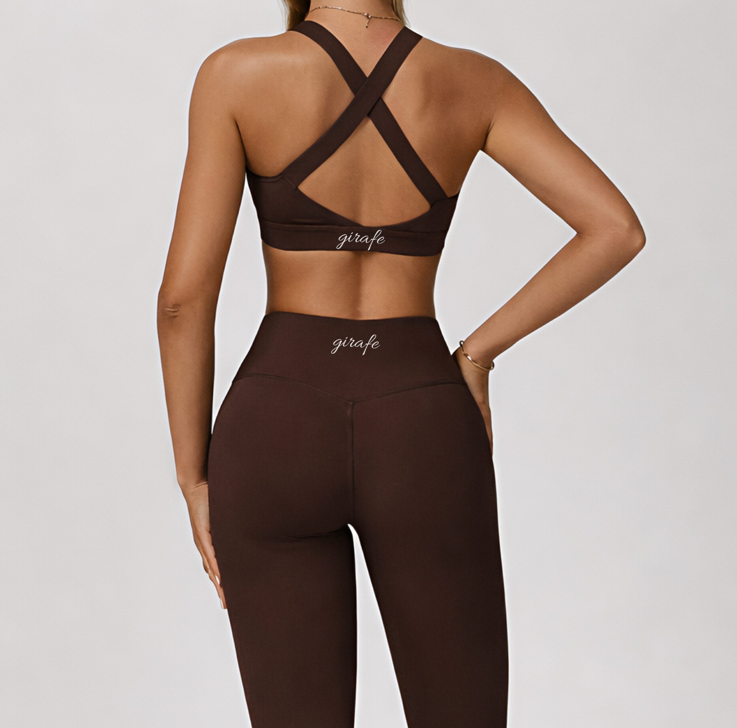 Top deportivo Iron Chocolat, top de alto impacto con tirantes cruzados en la espalda que ofrecen máxima estabilidad en entrenamientos intensos. Su tejido elástico y suave se adapta al cuerpo, permitiendo total libertad de movimiento. La colección IRON de Girafe está especialmente diseñada para CrossFit, pesas y sesiones de cardio que requieran buena sujeción, por lo que el top deportivo Iron Chocolat es un acierto asegurado.